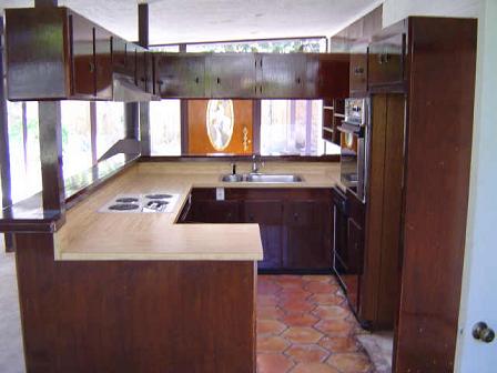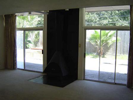 fireplace, lots of glass and an "open" kitchen. The house originally featured a room high acquarium with lighting effects