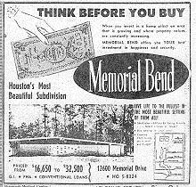 "Apart from the fact that street names are derived from the titles of operas, the remarkable thing about Memorial Bend is that many of its houses were designed by the architect William N. Floyd, one of the investors in the subdivision's development. Floyd's crisp, undemonstrative modern style gives Memorial Bend an inherent quality lacking in the surrounding neighborhoods of west Memorial."