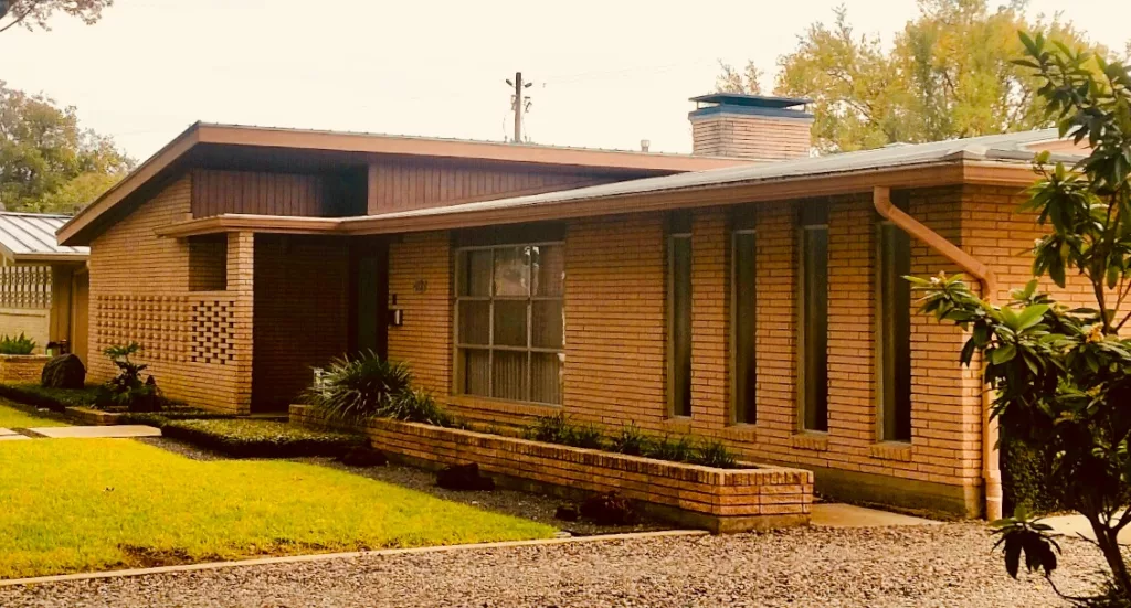 Don and Jim’s home is in the postwar addition of Ayrshire Place within the Braes Heights subdivision, developed in 1945 according to a master plan by the landscape architects Hare & Hare. The area is now part of Braeswood Place, a neighborhood featuring modern residential architecture by Joseph Krakower, Lucian Hood, Lars Bang, Brooks and Brooks, and others.