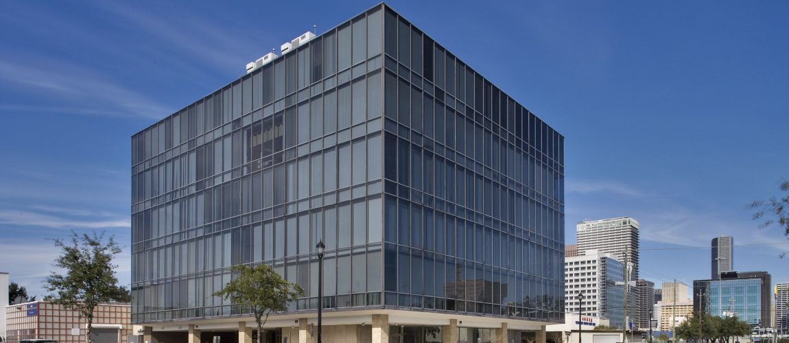 According to Stephen Fox’s Houston Architectural Guide, `The Gibraltar Building was the first building in Houston to have walls faced entirely in heat absorbing, solar gray glass. The Fannin front and the south-facing walls have been refaced in siver reflective glass.`