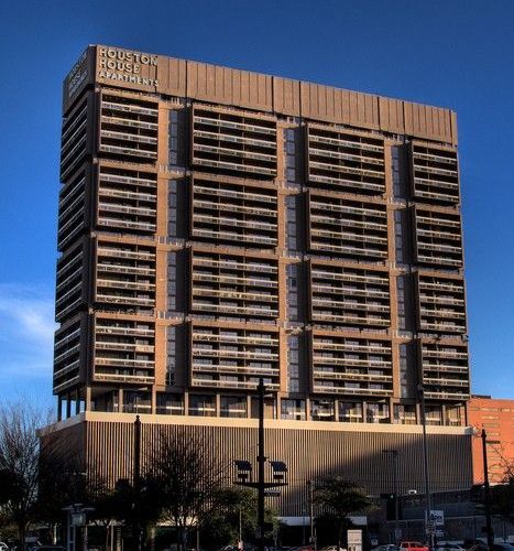 A dramatic design consisting of a tower set upon a base containing a parking garage and retail space, this building is the only known work in Houston by Washington, DC modernist Charles Goodman.