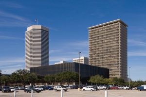 A dramatic design consisting of a tower set upon a base containing a parking garage and retail space, this building is the only known work in Houston by Washington, DC modernist Charles Goodman.