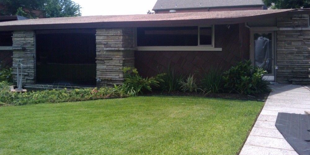 One of the first post-war projects initiated by the MacKie and Kamrath firm, this U-shaped complex is modest and residential in character. The scheme included one wing for the offices of the firm, the other as rental space for tenants, both facing a landscaped courtyard. Distinctive Wrightian features include dramatically horizontal ledge stone, mitered glass clerestory windows, and a low roofline with wide eaves that protect the interiors from sun. A drafting room with shed roof had large windows for ample natural light. A dark and compressed reception area led into larger offices with a picture window overlooking a triangularly-shaped pond. Convenient visitor parking spaces along the front allowed the firm`s clients to stop in and review plans without the hassles of visiting an office tower.