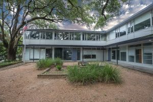 This house was designed by Si Morris of Wilson, Morris and Crain for his family. From the Houston Architectural Guide by Stephen Fox: `This small-scaled contemporary house, closed off from the traffic along Bissonnet, is focused on a series of internal garden courts.