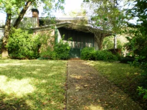 Alden B. Dow, who was one of Frank Lloyd Wright`s most talented and successful apprentices, designed this house for Charles Reed, an executive at the Dow Chemical Company. Dow also planned and designed most of Lake Jackson,TX. MacKie & Kamrath were the project architects of record for the Reed house; they also managed most of Dow’s work in Lake Jackson, which included many private residences and public buildings. Though still standing, the interiors of the Reed house are no longer intact, and the columns on the exterior have been altered.