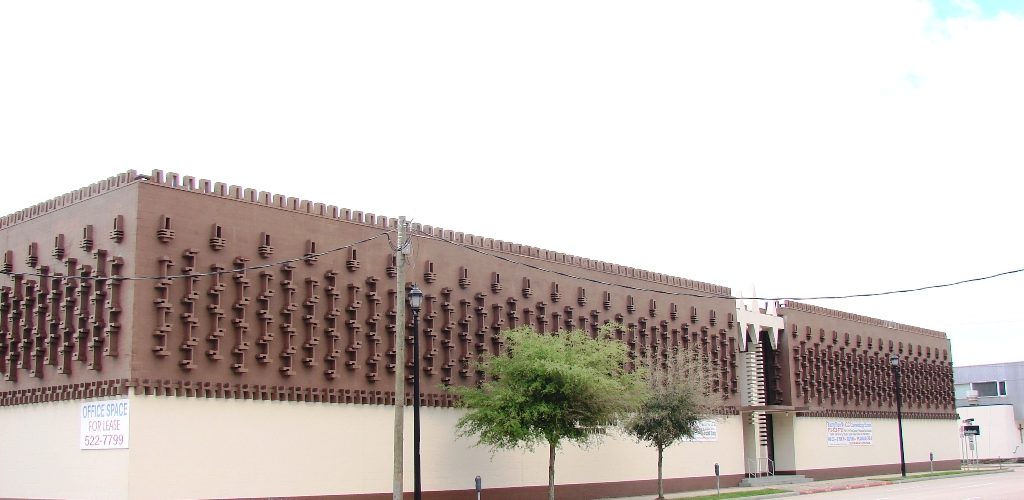 This building was originally built as a temporary switching station for Southwestern Bell, and was only meant to last around five years. It featured bays that could be easliy removed if expansion was needed. It later was owned by the Uniroyal Tire company, which is why it currently sports a dark paintjob on it`s upper half. This was one of Herb Greene`s first projects after his arrivlal in Houston and Joseph Krakower`s office.
