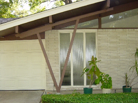 | Architectural Comments: | The exterior of this home features a variety of interesting design touches, the most noticeable being the basketweave pattern in the king-size brick. The entry of the home features what appears to be an original door as well as a reed glass sidelight. The reed glass is also noticeable in the dining room windows. In front of the dining room stands a diagonally framed column that may or may not provide structural support to the ceiling beams. |