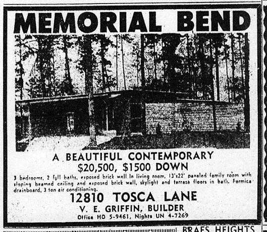 | Publication: | Houston Chronicle, March 17, 1957 Advertisement Houston Chronicle, June 6, 1957 Advertisement |