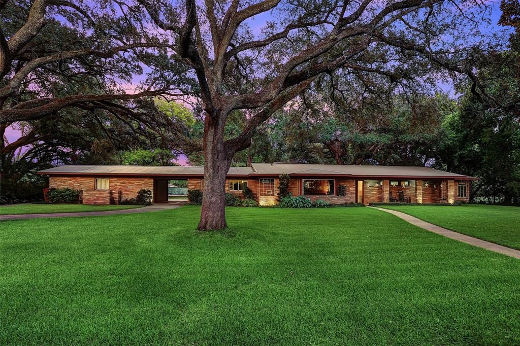 “Contemporary Country” was the term favored by architect Wylie Vale for the style he perfected and employed for the Arthur & Madalyn Miller house, built near downtown Katy in the early 1950’s. Miller was a long-time mayor and civic leader of Katy. Still prized elements of expansive windows, deep roof overhangs, natural stone walls, floors and fireplace, and fine woods enrich the design. The house has been thoughtfully preserved, keeping with the architects vision.